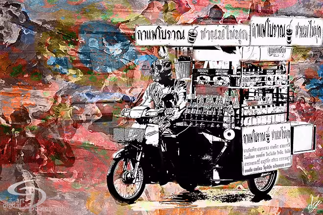 Digital Art: Death, depicted as a skeleton, rides a Tuk-tuk through Bangkok at night(Thailand). Digital Art: The two former opponents: Catalan separatist leader Carles Puigdemont and the former Spanish Prime Minister Mariano Rajoy Brey in front of the Catalan and Spanish flags. Digital Art: Hassan Rohani, former President of the Islamic Republic of Iran (2013-2021). Digital Art: A surrealistic collage: money, babushka, athletics (Czech Republic).